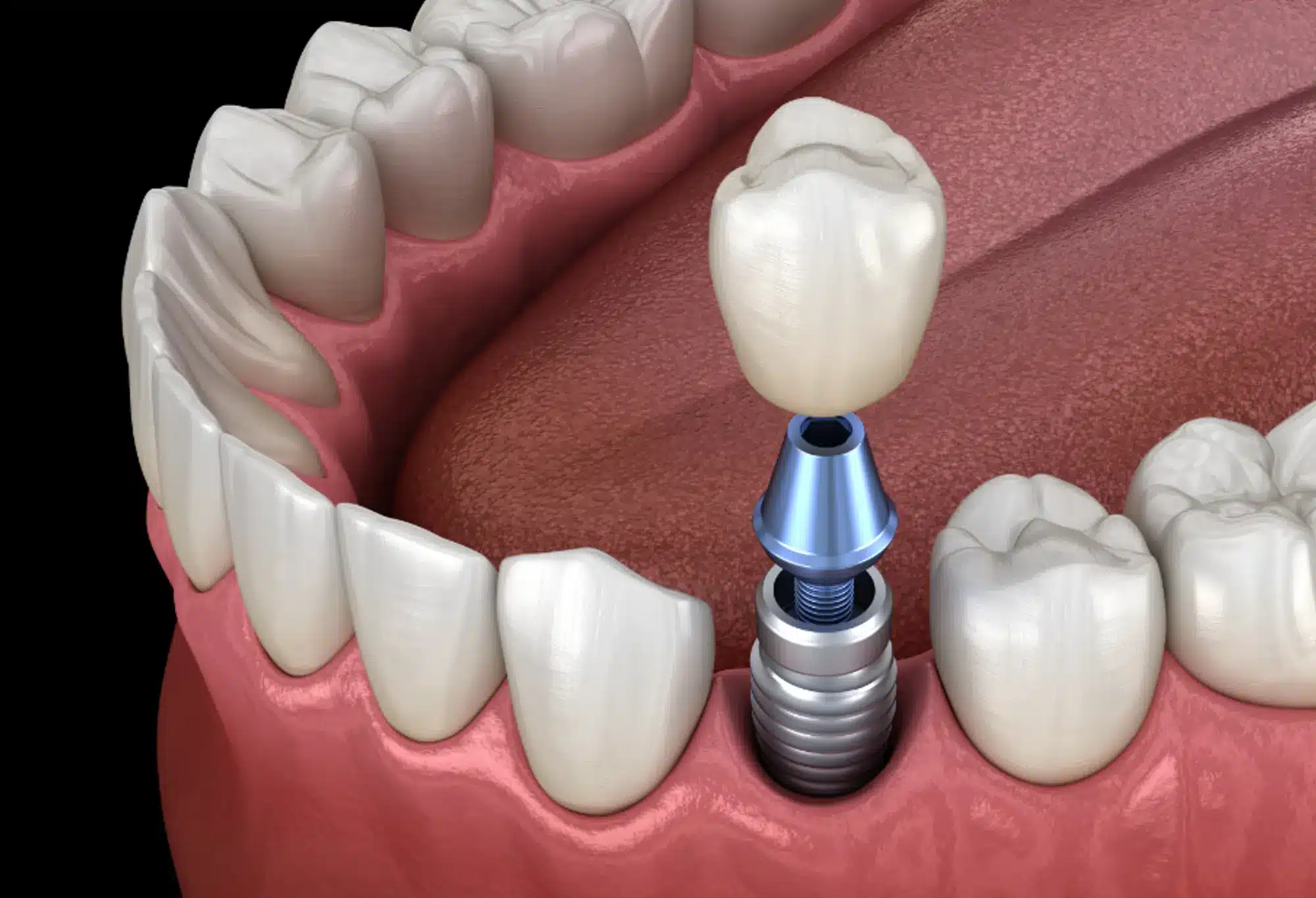 การแก้ปัญหาการสูญเสียฟันแท้ที่หลุดไปด้วยการผ่าตัด ฝังโครงรากฟันเทียมเพื่อยึดติดกับกระดูกขากรรไกรของคนไข้ ตรงตำแหน่งที่สูญเสียฟันเเละรากฟันธรรมชาติไป จากนั้นทันตแพทย์อาจจะทำฟันปลอม หรือครอบฟันมายึดติดกับราก ทดแทนฟันที่หลุดไป เพื่อให้ฟันบดเคี้ยวได้อย่างมีประสิทธิภาพเทียบเท่าฟันจริง